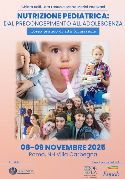 L’8 e il 9 novembre 2025, nei locali dell’hotel “NH Villa Carpegna”, in via Pio IV, 6, a Roma, si terrà il corso di nutrizione pediatrica di alta formazione “Dal preconcepimento all’adolescenza“. L’evento, patrocinato dall’Ordine dei Biologi del Lazio e dell’Abruzzo (OBLA) e dall’Ente nazionale di Previdenza ed Assistenza a favore dei Biologi (Enpab), affronta in modo completo e multidisciplinare i temi chiave della nutrizione dal preconcepimento all’adolescenza.