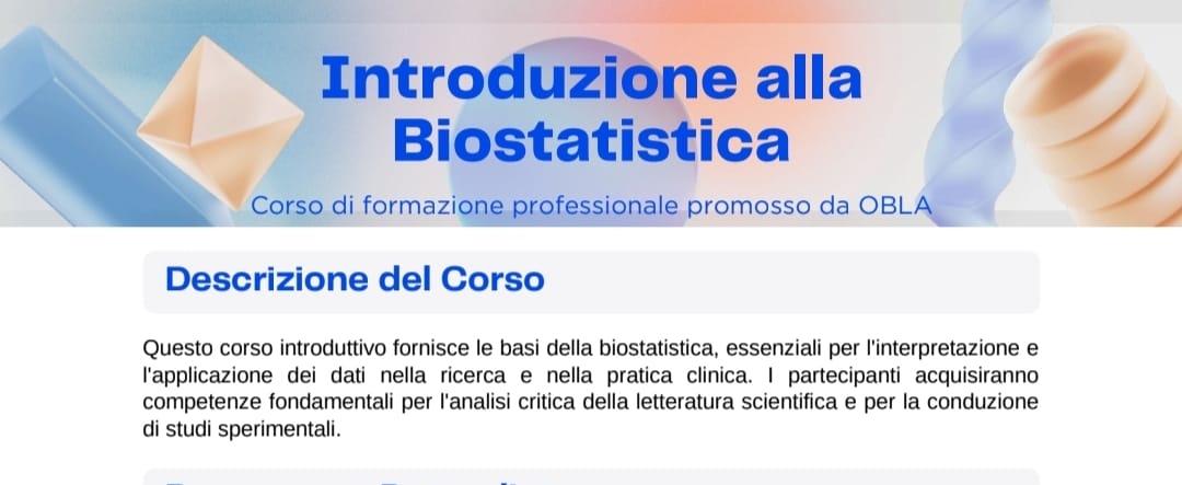 L’iniziativa nasce per rispondere alla crescente esigenza, da parte dei professionisti dell’area scientifica e clinica, di disporre di strumenti adeguati per la corretta lettura, interpretazione e analisi dei dati statistici, oggi sempre più centrali nella pratica professionale e nella valutazione della letteratura scientifica.